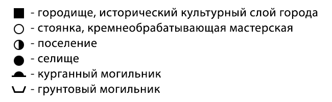 Описание карты На карте схематично показано местоположение археологических памятников Калужской области охраняемых государством. Точное указание расположения и описание типа памятников по каждому из районов области можно найти в прилагаемой книге.